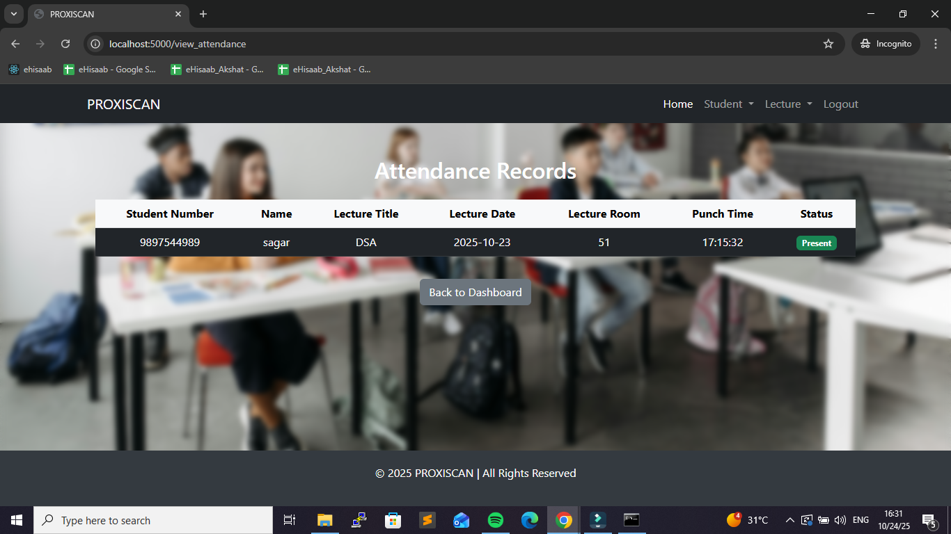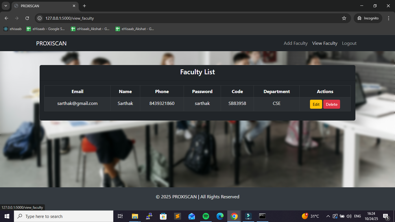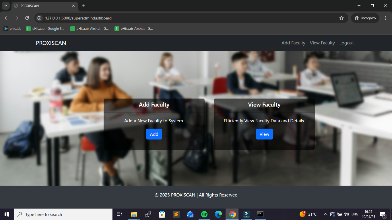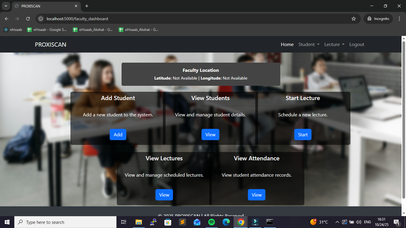 Faculty Panel: Manage students, lectures, and attendance records in real time.