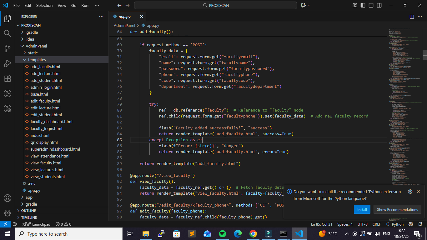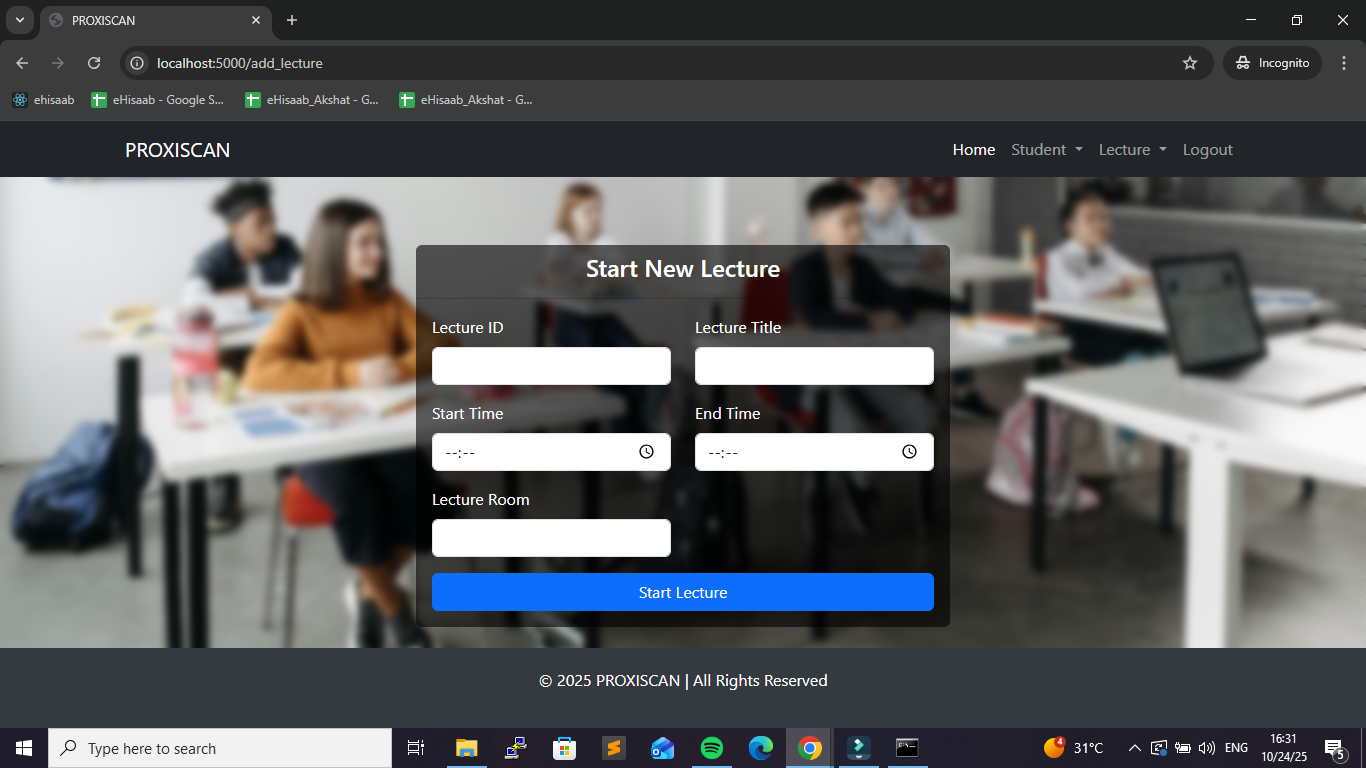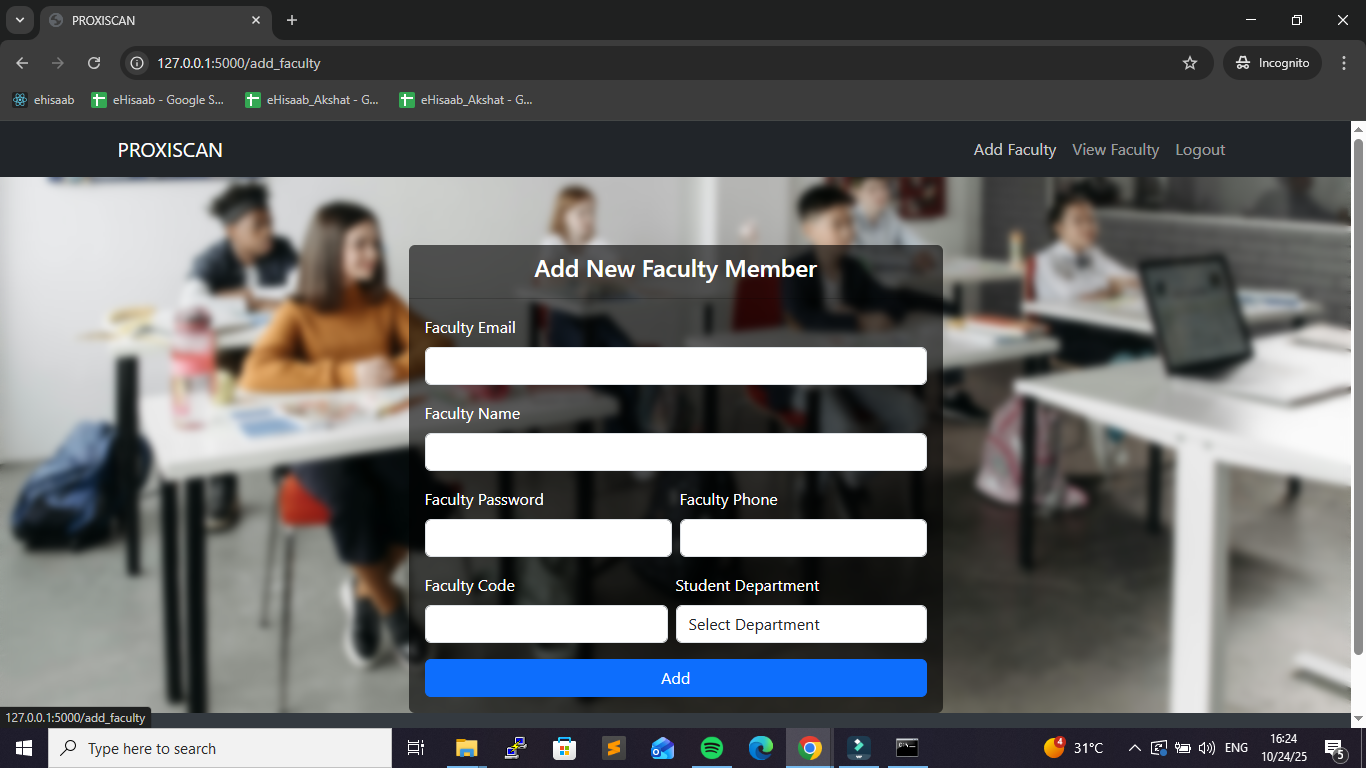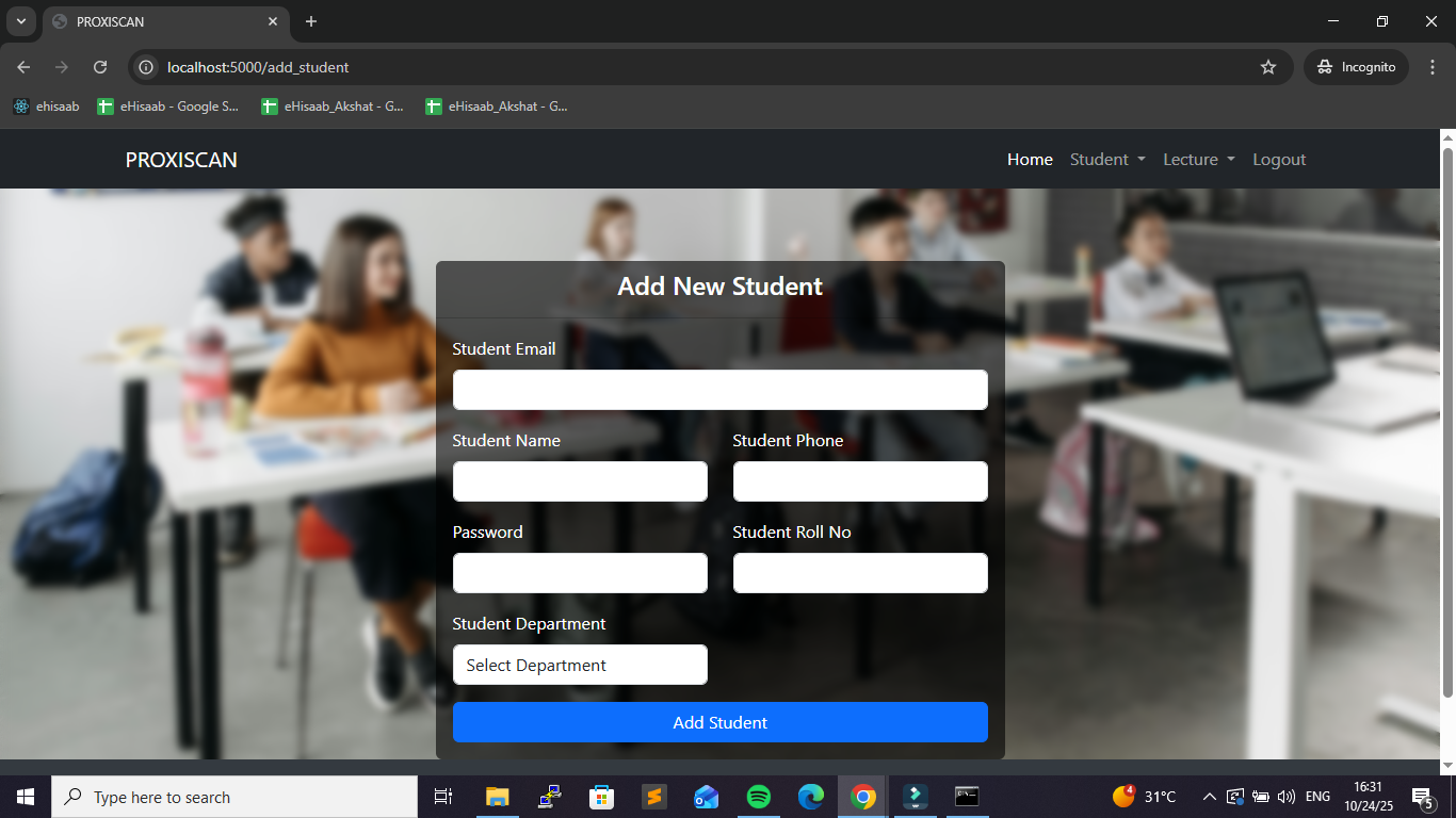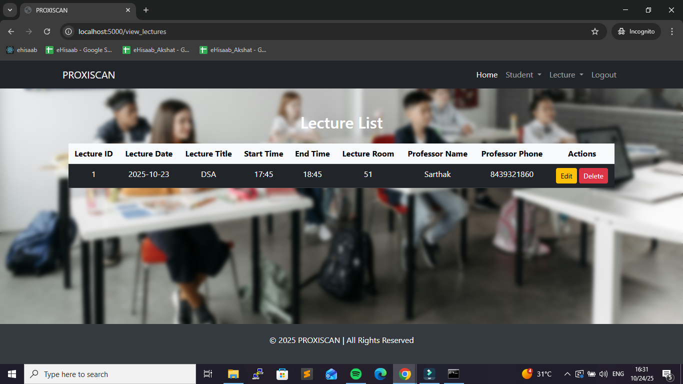 Faculty Panel: Manage students, lectures, and attendance records in real time.